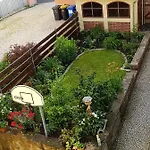 Das 1-Zimmer-Apartment Ferienwohnung Froeschlein - keine Monteure bietet einen Blick auf den Innenhof und liegt 7 Minuten Fußweg vom GoetheStadtMuseum entfernt Auf einer Terrasse des Apartments können die Gäste entspannen und einen Ausblick auf die Berge genießen.